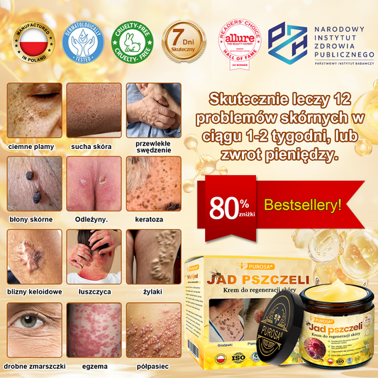 🍯 PUROSA® Krem odmładzający z jadem pszczelim| Kompleksowo rozwiązuje uporczywe problemy skórne, takie jak starzenie się, egzema, plamica, łuszczyca itp.